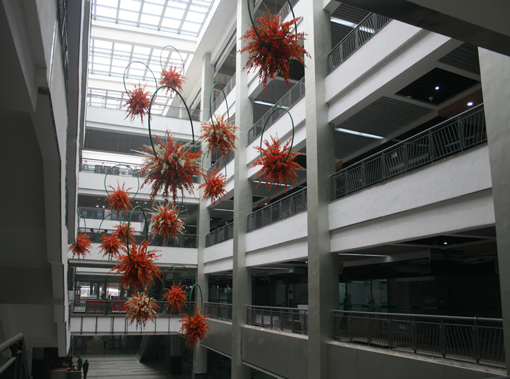 國際商貿(mào)城五區(qū)市場吸納了國際大型商業(yè)中心的先進理念,配有電子商務(wù)系統(tǒng)、智能安全系統(tǒng)、物流短駁配送系統(tǒng)、金融服務(wù)系統(tǒng),中央空調(diào)、大型電子顯示屏、寬帶網(wǎng)絡(luò)、數(shù)據(jù)中心、環(huán)繞高架車道、大型停車場、雨水回收器、自動天窗等配套設(shè)施一應(yīng)俱全,堪稱集購物、旅游、休閑為一體的國際性商務(wù)中心,是國內(nèi)現(xiàn)代化、國際化水品最高的全球小商品批發(fā)交易市場。